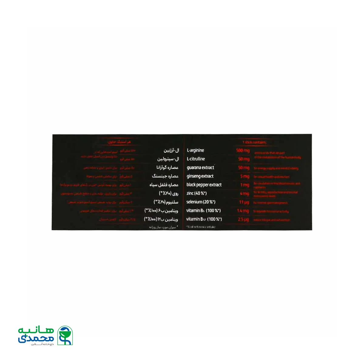• حاوی جینسینگ و گوارنا به عنوان ماده محرک