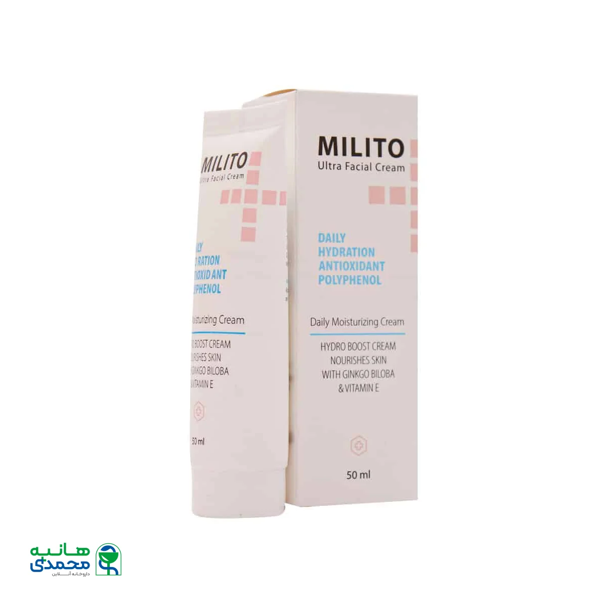 کرم مرطوب کننده پوست چرب و مستعد آکنه میلیتو باعث رطوبت رسانی عمقی به پوست میشود. بدین صورت از ترشح بیش از حد چربی پیشگیری نموده و باعث جلوگیری از ایجاد جوش روی پوست خواهد شد. علاوه بر آن کرم مرطوب کننده پوست چرب میلیتو حاوی آنتی اکسیدان است و از پوست در برابر عوامل آسیب رسان خارجی محافظت مینماید. در کرم مرطوب کننده پوست چرب و مستعد آکنه میلیتو از عصاره برگ جینکوبیلوبا استفاده شده است که خاصیت کلاژن سازی، ضد پیری و روشن کنندگی دارد.