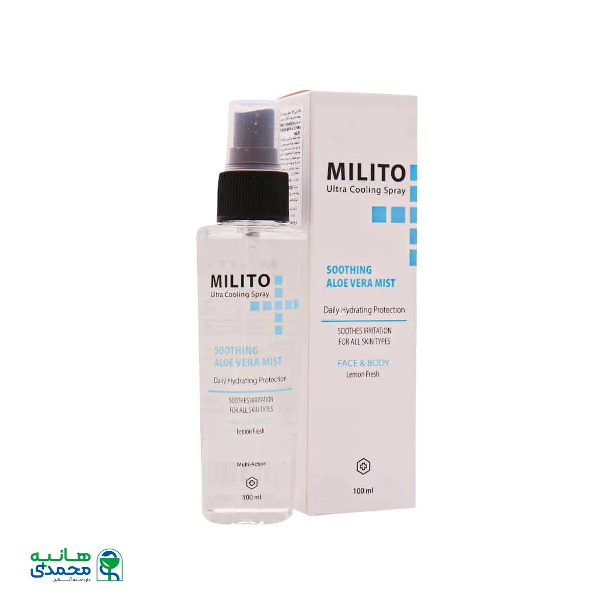 اسپری مرطوب کننده برای برطرف کردن قرمزی و التهاب پوست خشک و افرادی که به درماتیت آتوپیک مبتلا هستند، تجویز میشود. اسپری آبرسان و مرطوب کننده پوست حاوی عصاره آلوئه ورا میلیتو یک گزینه مناسب برای افراد با انواع پوست است. این محصول با خاصیت آبرسانی 24 ساعته یک گزینه برای قبل و یا بعد از آرایش به شمار میآید و از آن میتوان به عنوان زیرساز آرایش و یا فیکس کردن آرایش استفاده نمود.