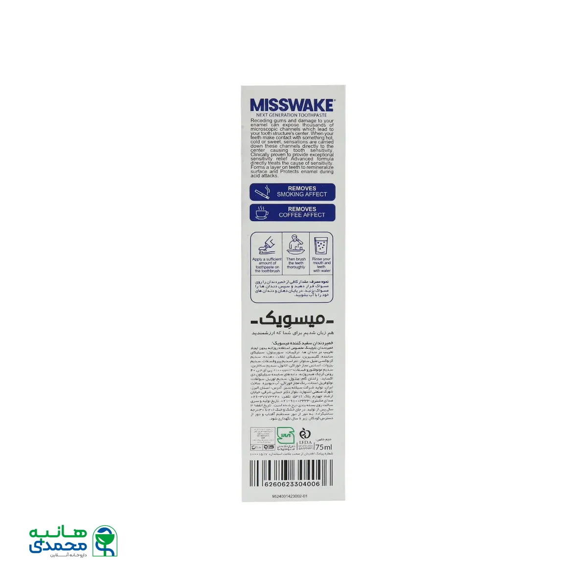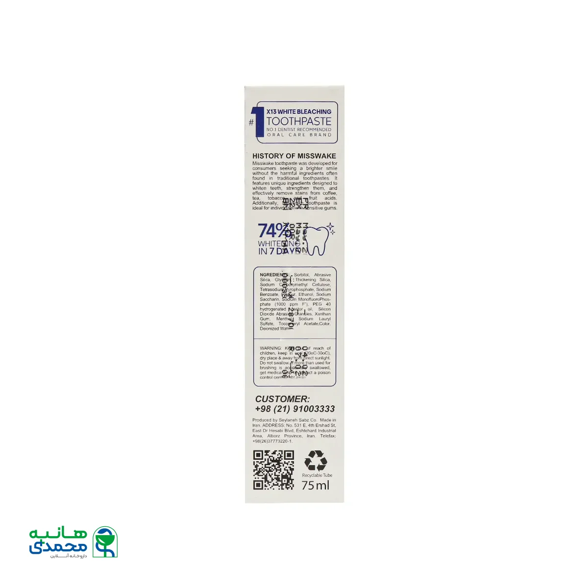 با خرید خمیر دندان دیلی بلیچینگ میسویک از داروخانه آنلاین دکتر هانیه محمدی، شما از چندین مزیت واقعی بهرهمند میشوید. این داروخانه محصولات را مستقیما و بدون واسطه از وارد کننده رسمی یا تولید کننده معتبر تامین میکند، در نتیجه قیمت گذاری آن منصفانه، رقابتی و اغلب همراه با تخفیفهای دورهای است. همچنین امکان ارسال سریع و حتی رایگان، تضمین اصالت کالا و بهرهمندی از پشتیبانی حرفهای، تجربهای راحت و قابل اطمینان را برای مشتری رقم میزند. به همین خاطر گفته شده است که خرید از دکتر هانیه محمدی تنها یک تراکنش ساده نیست؛ بلکه راهی برای مطمئن بودن از کیفیت، اصالت و خدماتی است که به شما احترام میگذارد.