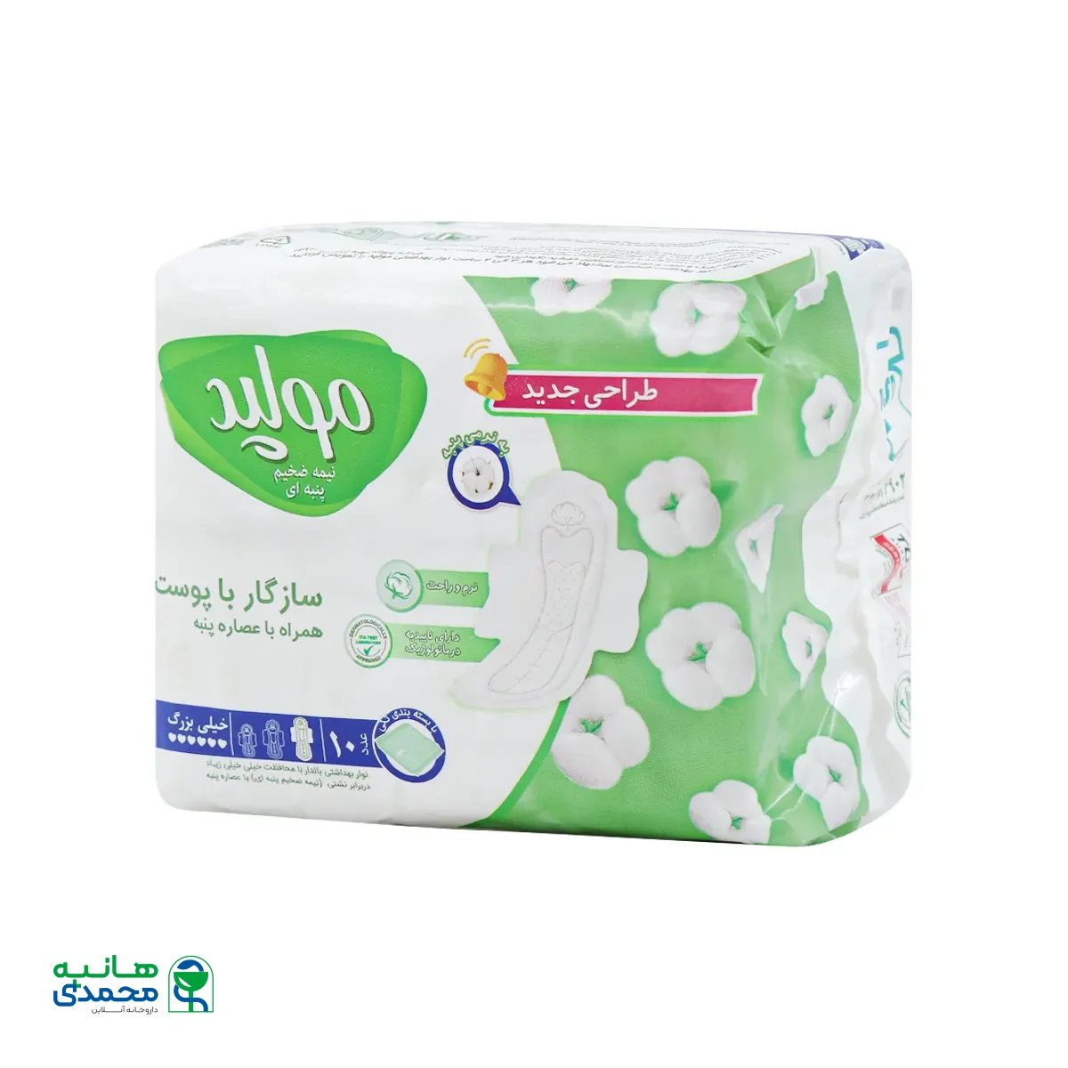 نوار بهداشتی بالدار نیمه ضخیم پنبه ای مولپد سایز خیلی بزرگ 10 عددMolped Maxi Soft Extra Large 10 Pcs