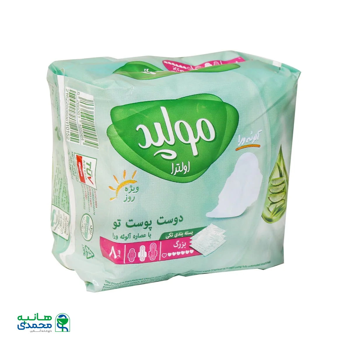 نوار بهداشتی بزرگ مولپد اولترا با عصاره آلوئه ورا ویژه روز 8 عددMolped Ultra With Aloe Vera Daily Use Size Large 8 Pads