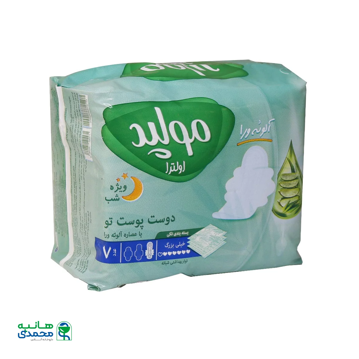 نوار بهداشتی خیلی بزرگ مولپد اولترا با عصاره آلوئه ورا ویژه شب 7 عددMolped Ultra With Aloe Vera Night Use Size XLarge 7 Pads