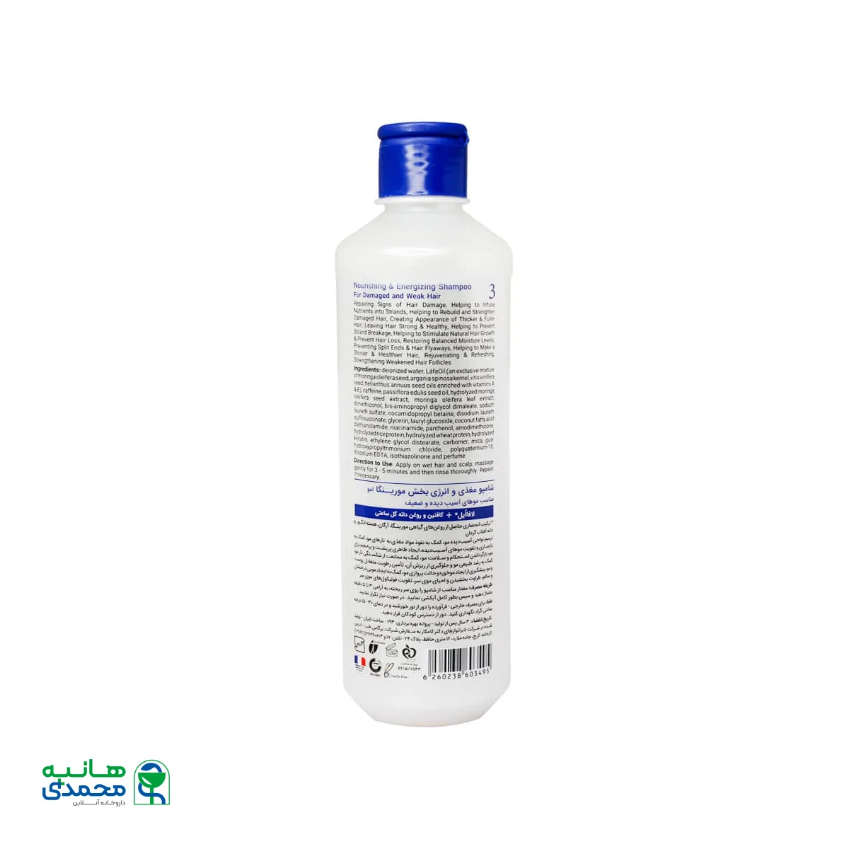 شامپو مغذی و انرژی بخش 3 مورینگا امو مناسب موهای آسیب دیده و ضعیفMoringa Emo 3 Nourishing & Energizing Shampoo for damaged and weak hair