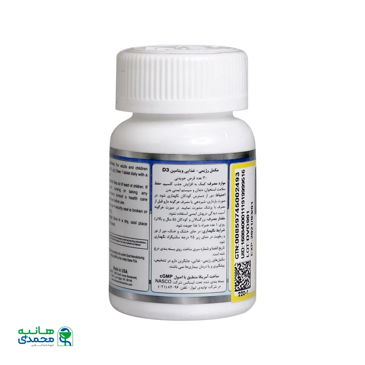 جدول ترکیبات قرص جویدنی ویتامین D3 نچرال ورلد