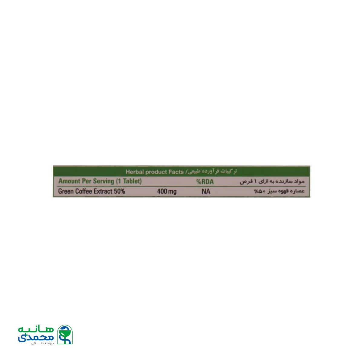 عصاره قهوه سبز 400mg 50%