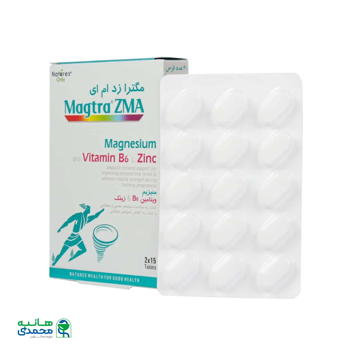 قرص مگترا زد ام ای نیچرز اونلی ، محصولی مناسب جهت افزایش سطح سلامت سیستم عصبی و عضلانی است. این محصول حاوی منیزیم استئارات، منیزیم اکساید، زینک سولفات مونوهیدرات و ویتامین B6 به صورت پیریدوکسین هیدروکلراید است و وظیفه کاهش اسپاسم عضلانی را برعهده دارد. قرص منیزیم در فرآیند متابولیسم انرژی نقش داشته و عملکرد طبیعی عضلات را بهبود میبخشد. این ماده فشار خون را تنظیم نموده و مانع از بروز حملات قلبی در افراد میشود.