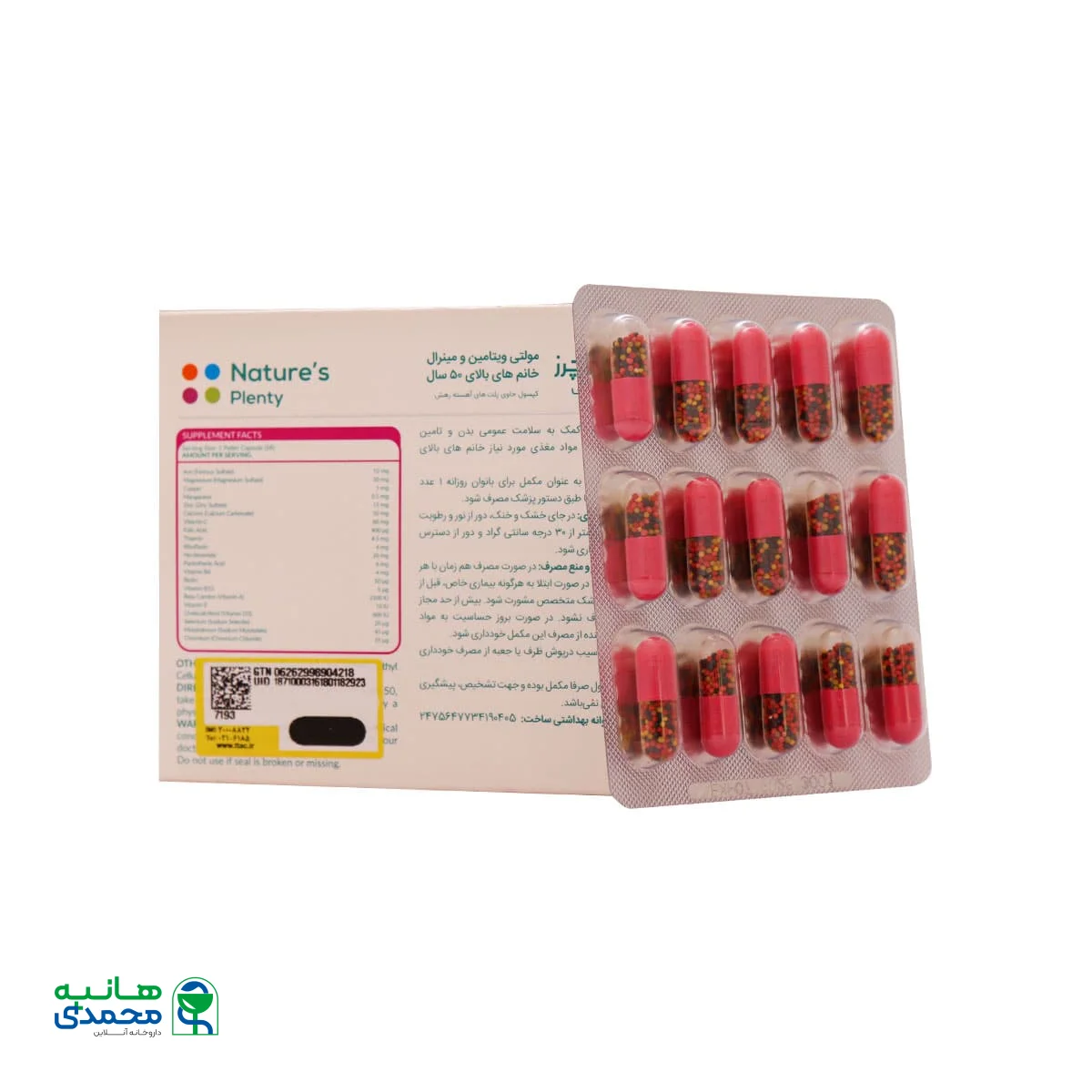 کپسول مولتی ویتامین و مینرال خانم های بالای 50 سال نیچرز پلنتیNatures Plenty Multivitamins And Minerals For Women Over 50 caps