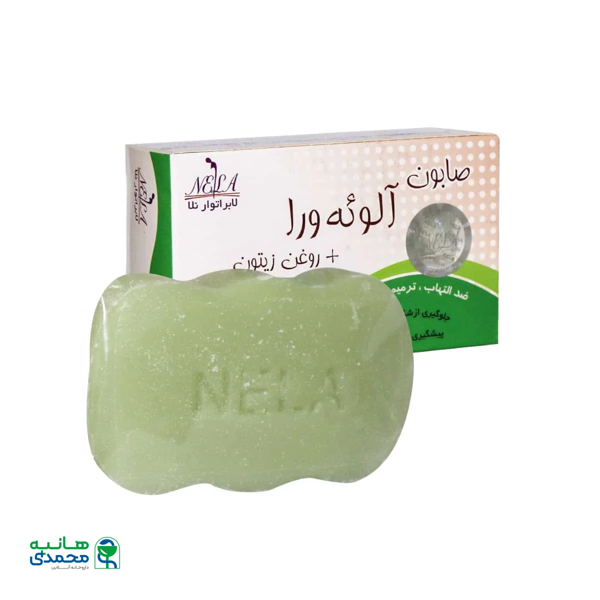 صابون آلوئه ورا و روغن زیتون نلا ضد التهاب، ترمیم و بازسازی کننده بافت‌های آسیب دیده پوست است. که به درمان قرمزی و التهابات پوستی کمک می‌کند. این صابون همچنین برای شستشوی موها مناسب است و از موخوره جلوگیری می‌کند.