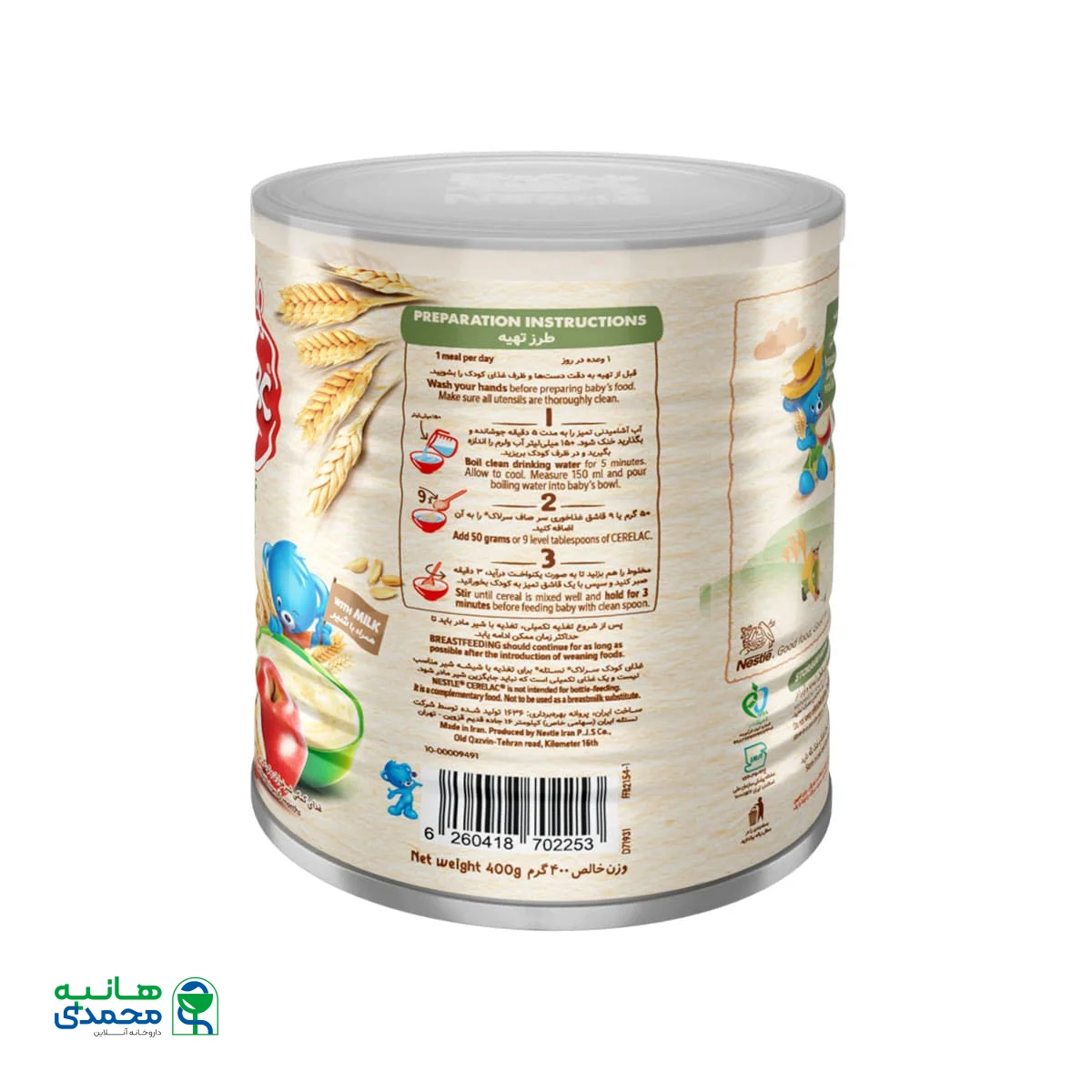 سرلاک گندم و سیب به همراه شیر نستله مناسب کودکان از پایان 7 ماهگی 400 گرمNestle Wheat And Apple With Milk Cerelac From 7 Months 400 g
