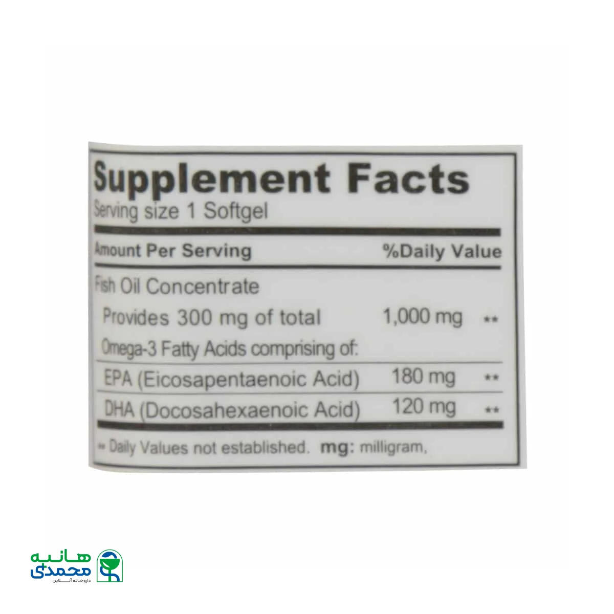 جدول ترکیبات در هر سافت ژل روغن ماهی امگا 3 1000 میلی گرم نیوسنتری
