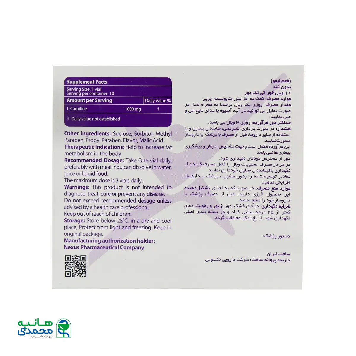 مشخصات کلیNextyle L Carnitine 1000 mg 10 Vials