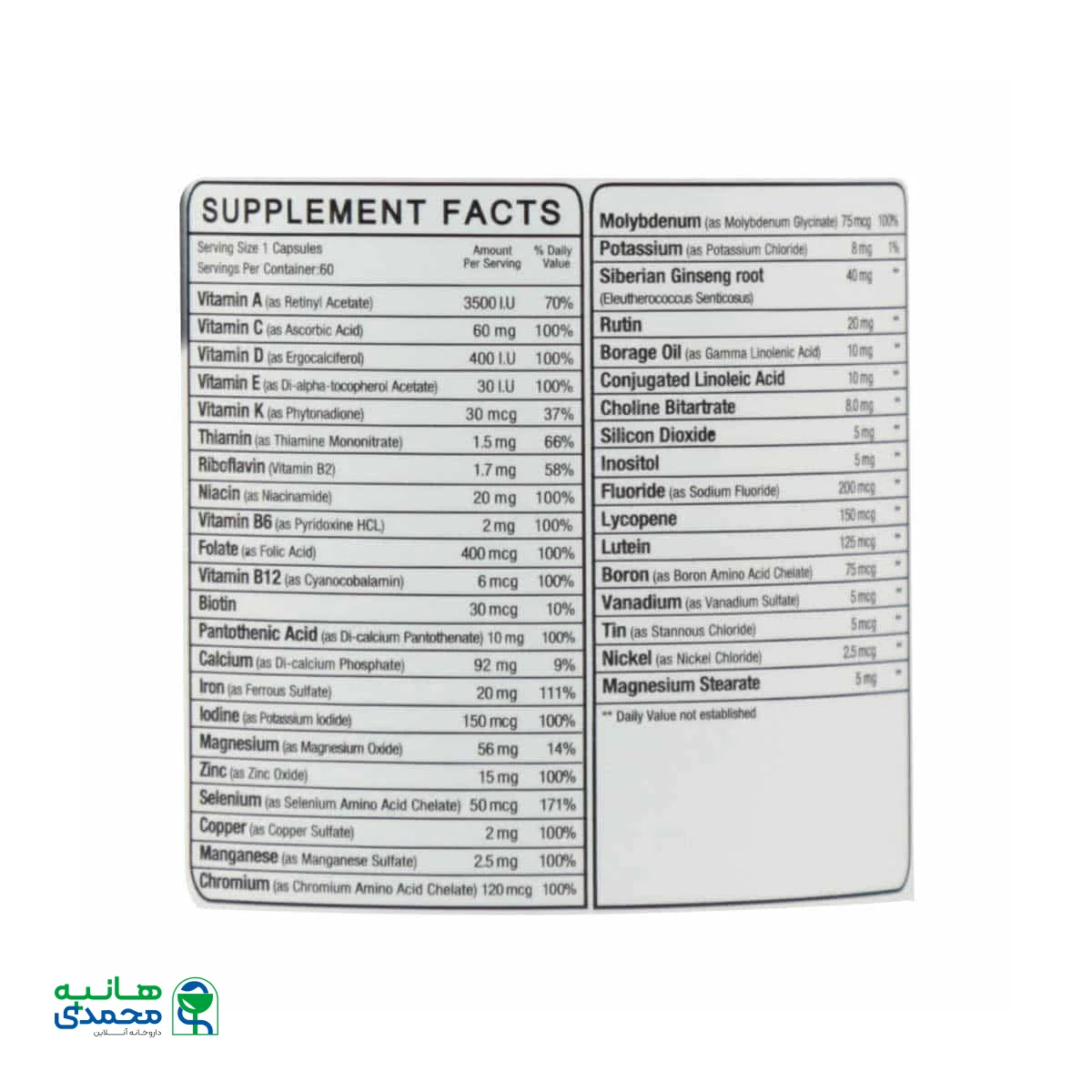 ویژگی های کپسول مولتی ویتامین بالای 50 سال نورم لایف