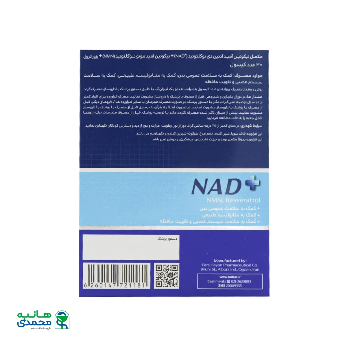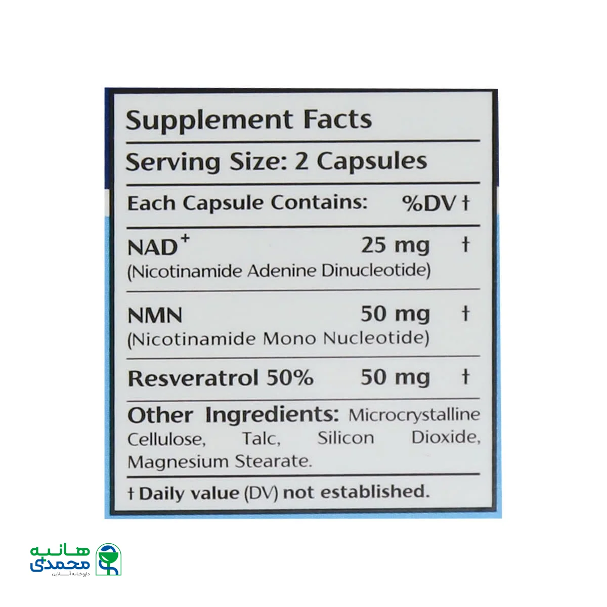 - مکمل حاوی نیکوتین آمید آدنین دی نوکلئوتید، نیکوتین آمید مونو نوکلئوتید و رزوراترول