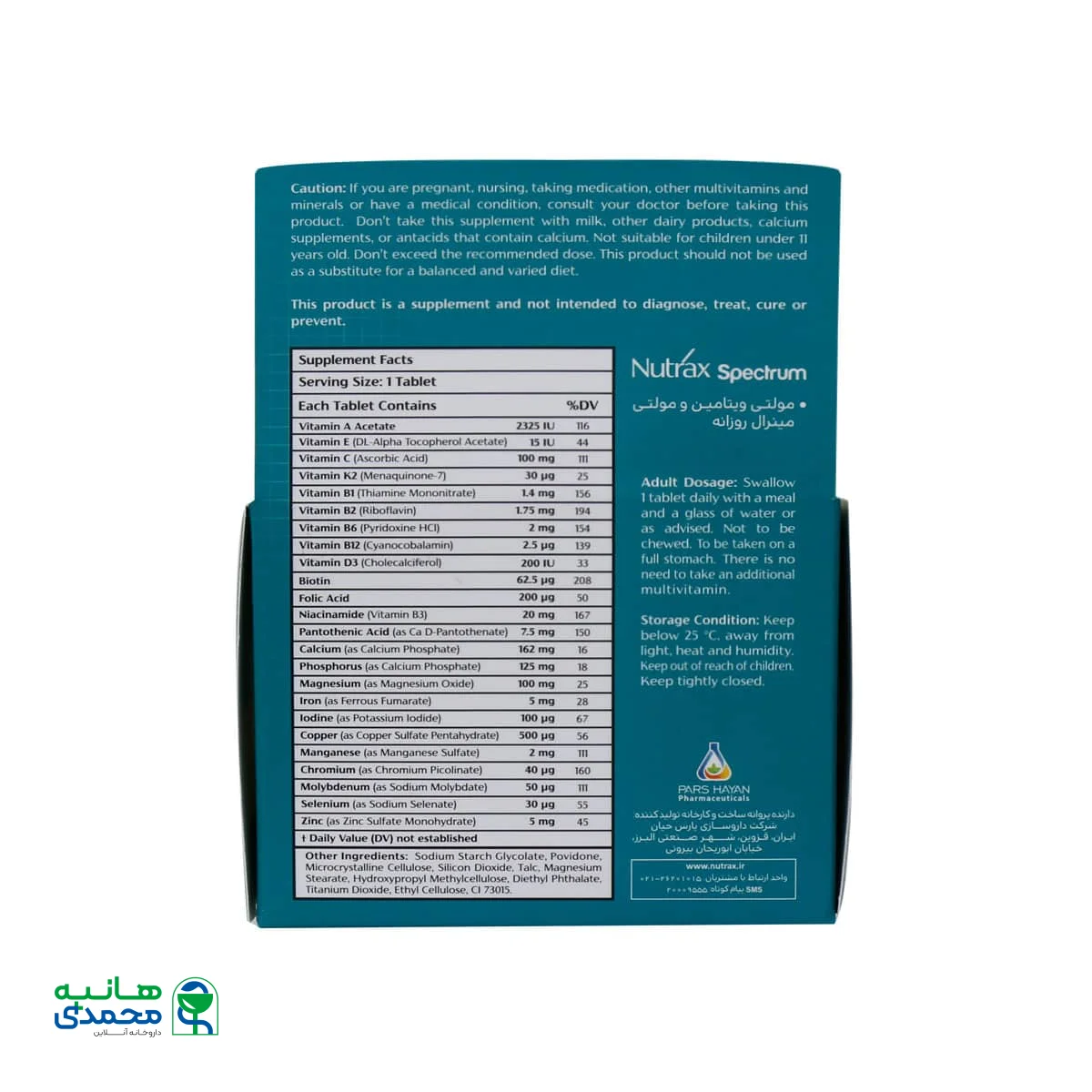 قرص مولتی ویتامین و مینرال روزانه اسپکتروم نوتراکس صرفا یک مکمل غذایی بوده و برای پیشگیری، تشخیص و درمان بیماریها کاربرد ندارد.