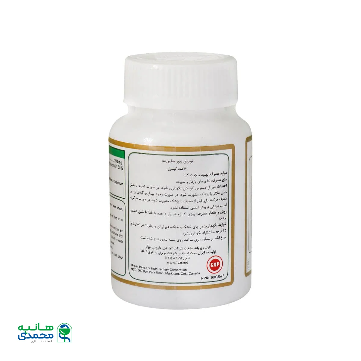 کپسول نوتری لیور ساپورت نوتری سنتری برای بهبود سلامت کبد روزانه مصرف می شود. ماده اصلی این کپسول دارویی خار مریم است. خار مریم برای بیماری های کبدی و هپاتیت مصرف می شود. همچنین از بروز سرطان کبد نیز جلوگیری می کند.