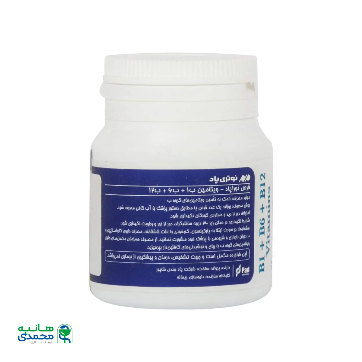 قرص نوراپاد نوتری پاد نوعی مکمل غذایی و ترکیبی شامل ویتامین B1، B6 و B12 است که به تامین ویتامین‌های گروه ب می‌پردازد. با خرید و استفاده از قرص ب کمپلکس می‌توان به بهبود کارکرد سیستم عصبی کمک کرد و از بروز برخی اختلالات مربوط به رژیم و تغذیه پیشگیری کرد. به طور کلی می‌توان گفت قرص نوروبین در حفظ سلامت قسمت‌های مختلفی از بدن تاثیرگذار است. به طور مثال به سالم ماندن دستگاه عصبی کمک می‌کند، باعث افزایش تولید گلبول‌های قرمز خون شده و سوخت و ساز مواد مغذی در بدن و استفاده از آنها را ساده‌تر می‌کند.