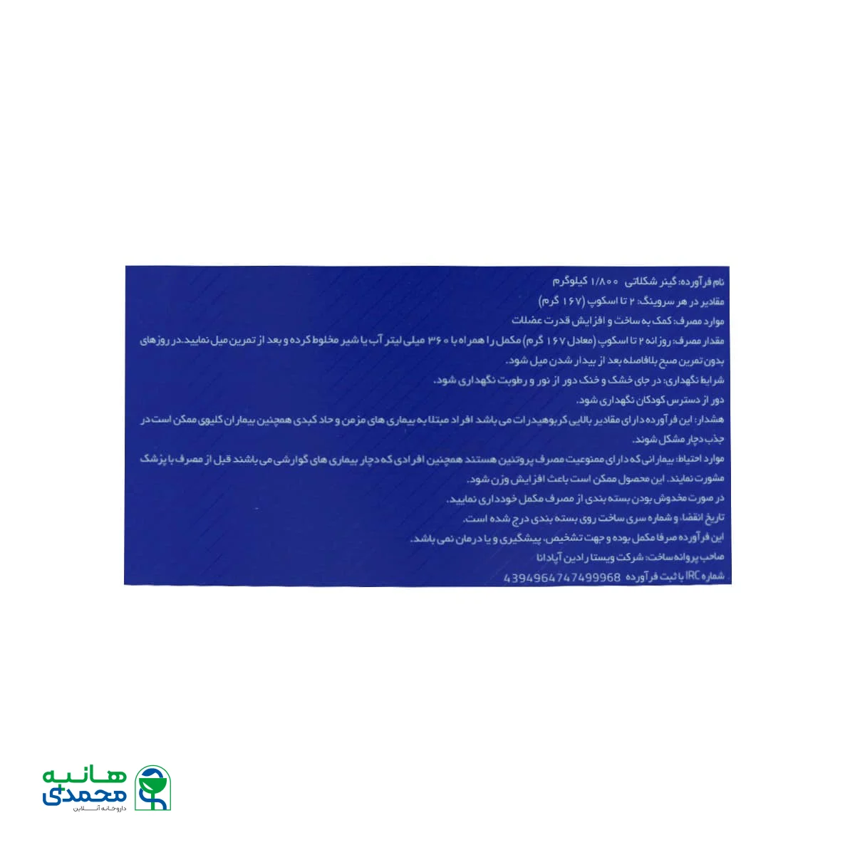 - حاوی مالتودکسترین و پروتئین وی کنسانتره
