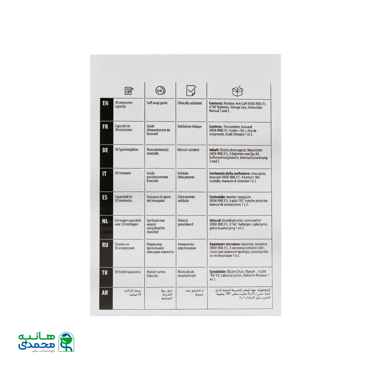 مشخصات فشارسنج دیجیتال بازویی امرون مدل M2 پلاس