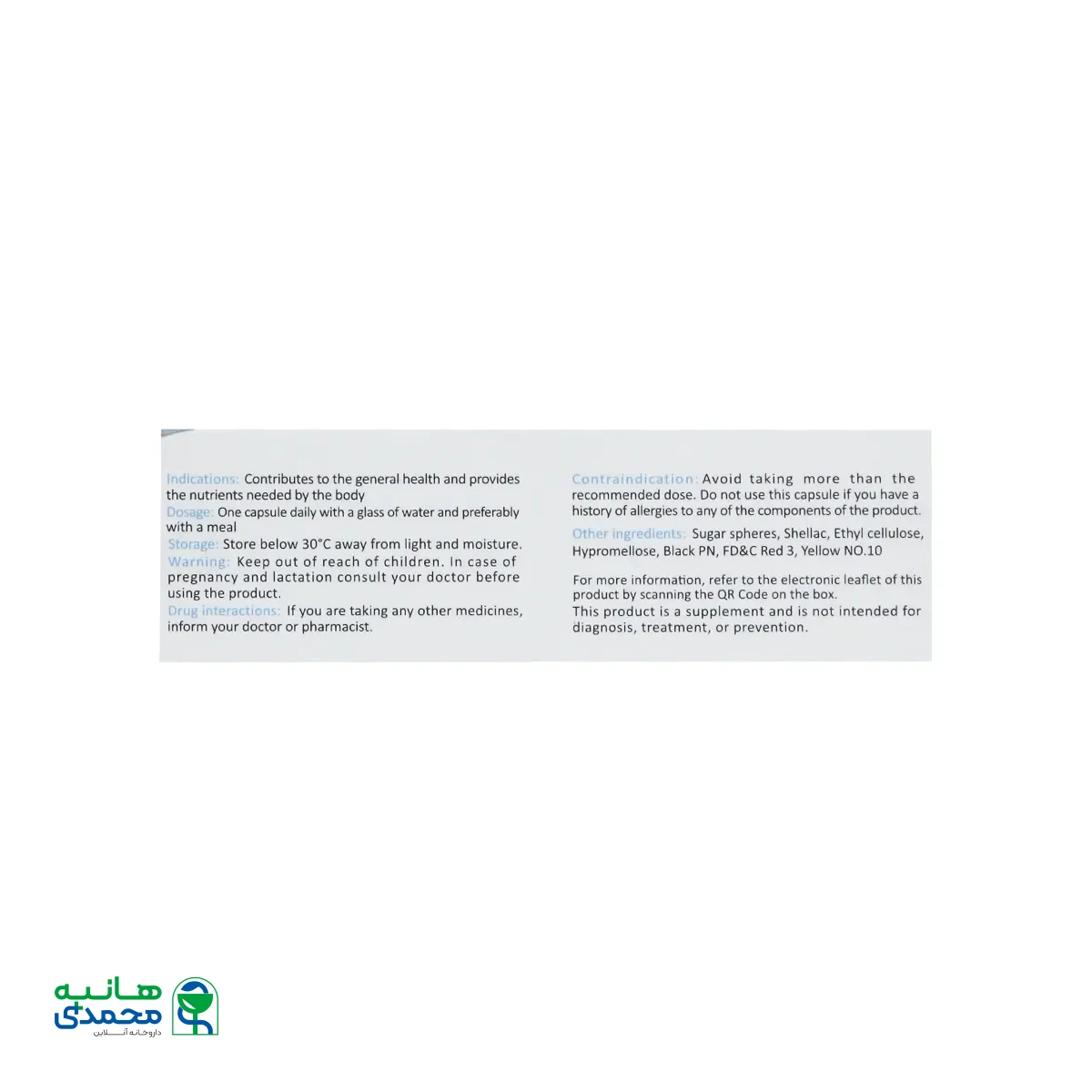 هر مکمل به موازات اثرات مطلوب درمانی ممکن است سبب بروز برخی عوارض ناخواسته شود. لذا در صورت بروز هر گونه علائم غیر طبیعی با پزشک یا داروساز خود مشورت کنید.