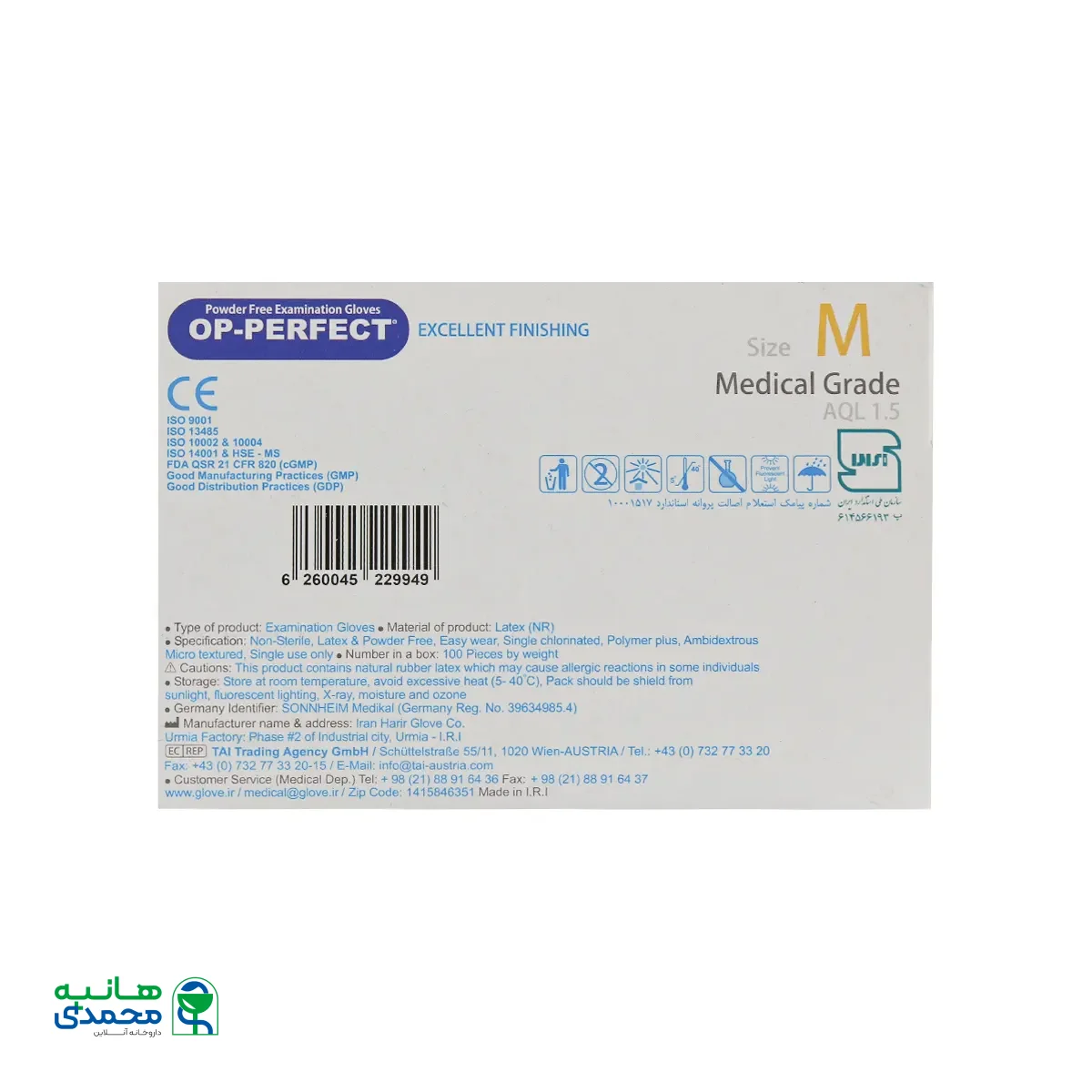 - مقاومت و دوام: دستکش لاتکس op perfect به دلیل ساختار محکم و مقاومی که دارد، دوام و استحکام بالایی نیز دارد. این ویژگی باعث میشود که دستکش در برابر پارگی، سوراخ شدن و پاره شدن مقاوم باشد.