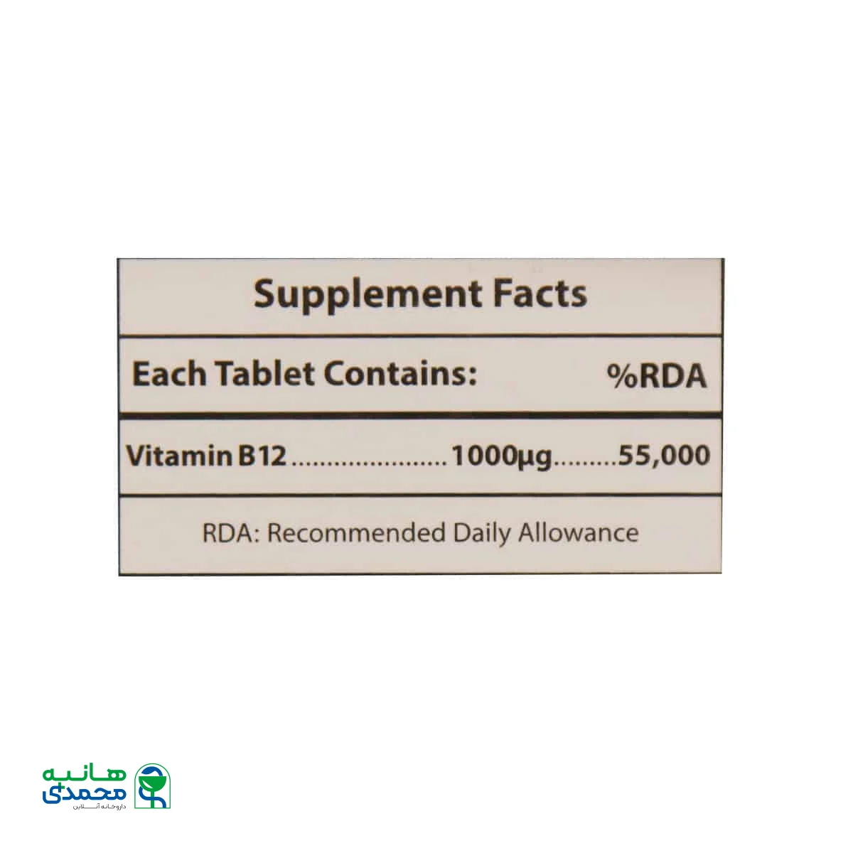 | ویتامین B12 | 1000µg | 55,000% |