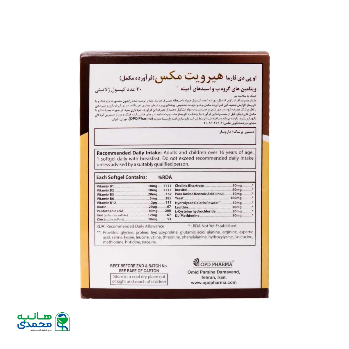 او پی دی فارما هیرویت مکس مکمل بوده و جهت تشخیص، پیشگیری و یا درمان بیماری نیست.