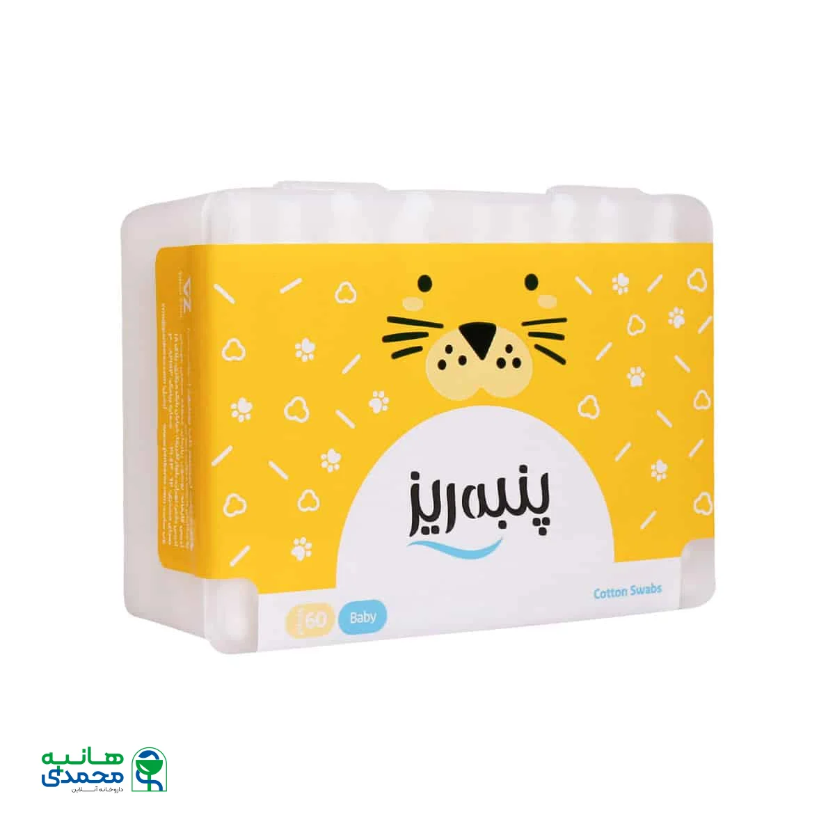 گوش پاک کن کودک پنبه ریز والدین را قادر می سازد تا پشت، روی گوش، اطراف بینی و بین انگشتان دست و پای کودک را با گوش پاک کن کودک که با آب گرم مرطوب شده است، تمیز و خشک نمایند. این گوش پاک کن از پنبه 100% خالص و هیدروفیل ساخته شده و دارای دسته پلاستیکی و انعطاف پذیر است که با چسبی مقاوم به پنبه متصل شده است. گوش پاک کن کودک پنبه ریز ، سطحی پله مانند دارد و فقط تا یک میزان مشخص که برای پاک کردن حفره خارجی گوش لازم است اجازه ورود به داخل گوش را می دهد و به کمک آن به راحتی می توان مواد روغنی داخل کانال گوش نوزاد را که توسط موهای درون گوش به قسمت بیرونی گوش هدایت می شوند، پاک کرد.