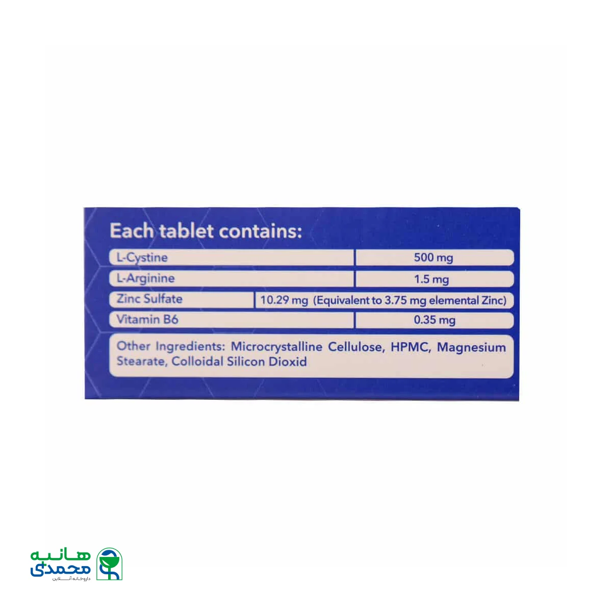 • حاوی ال سیستین، ال آرژنین، ویتامین B6 و روی
