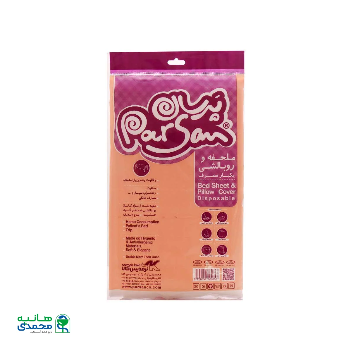 شما میتوانید ست ملحفه و روبالشی پرسان و انواع دیگر محصولات یکبار مصرف بهداشتی را از سایت داروخانه آنلاین دکتر هانیه محمدی خریداری کرده و درب منزل یا محل کار خود تحویل بگیرید. در صورت داشتن هر گونه سوال و یا نیاز به مشاوره میتوانید از طریق تلفن، نظرات، تیکت با کارشناسان ما ارتباط برقرار کنید. قطعا کارشناسان ما مناسبترین گزینه را با توجه به نیاز و بودجه شما در اختیارتان قرار خواهند داد.
