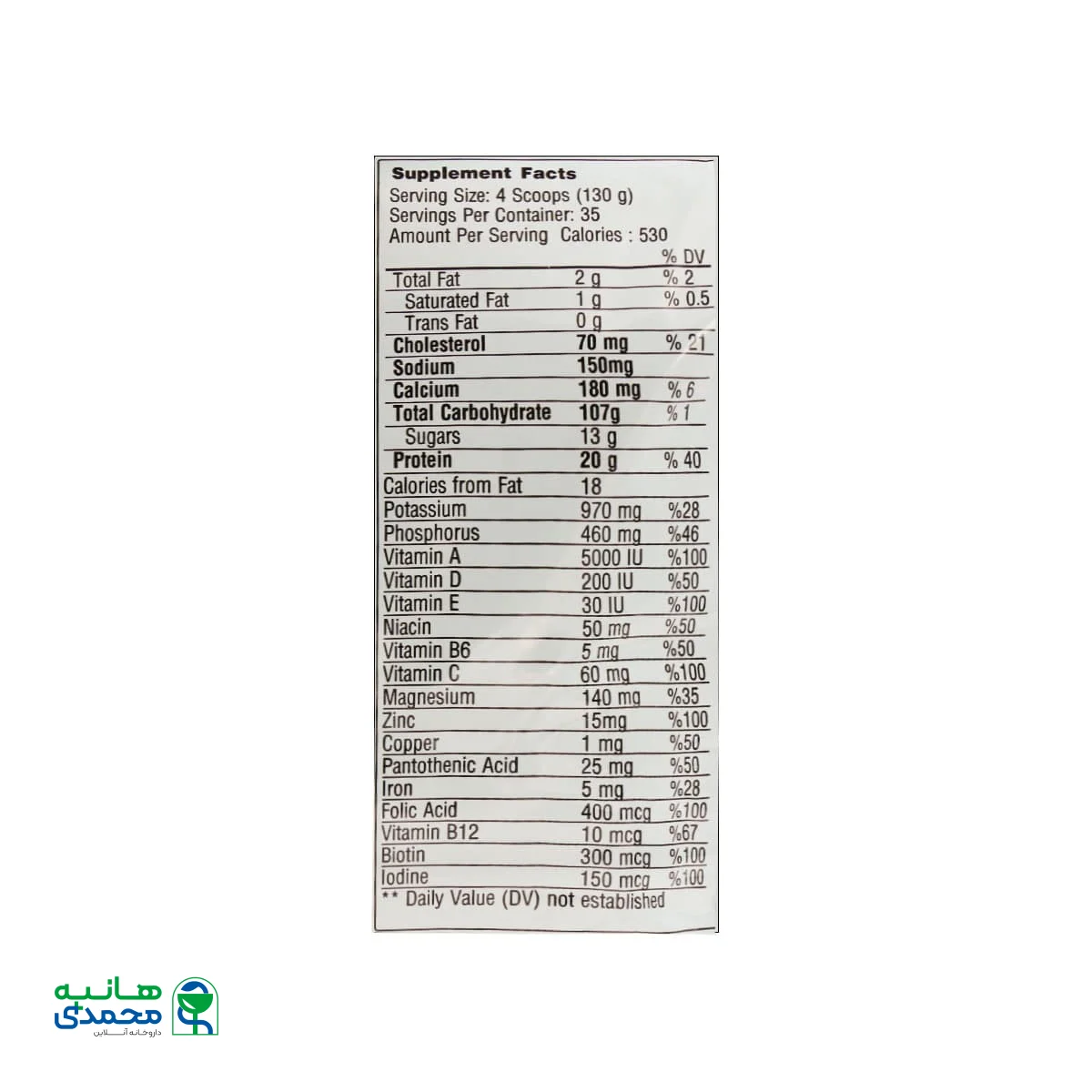 | ویتامین E | 30 IU | 100% |