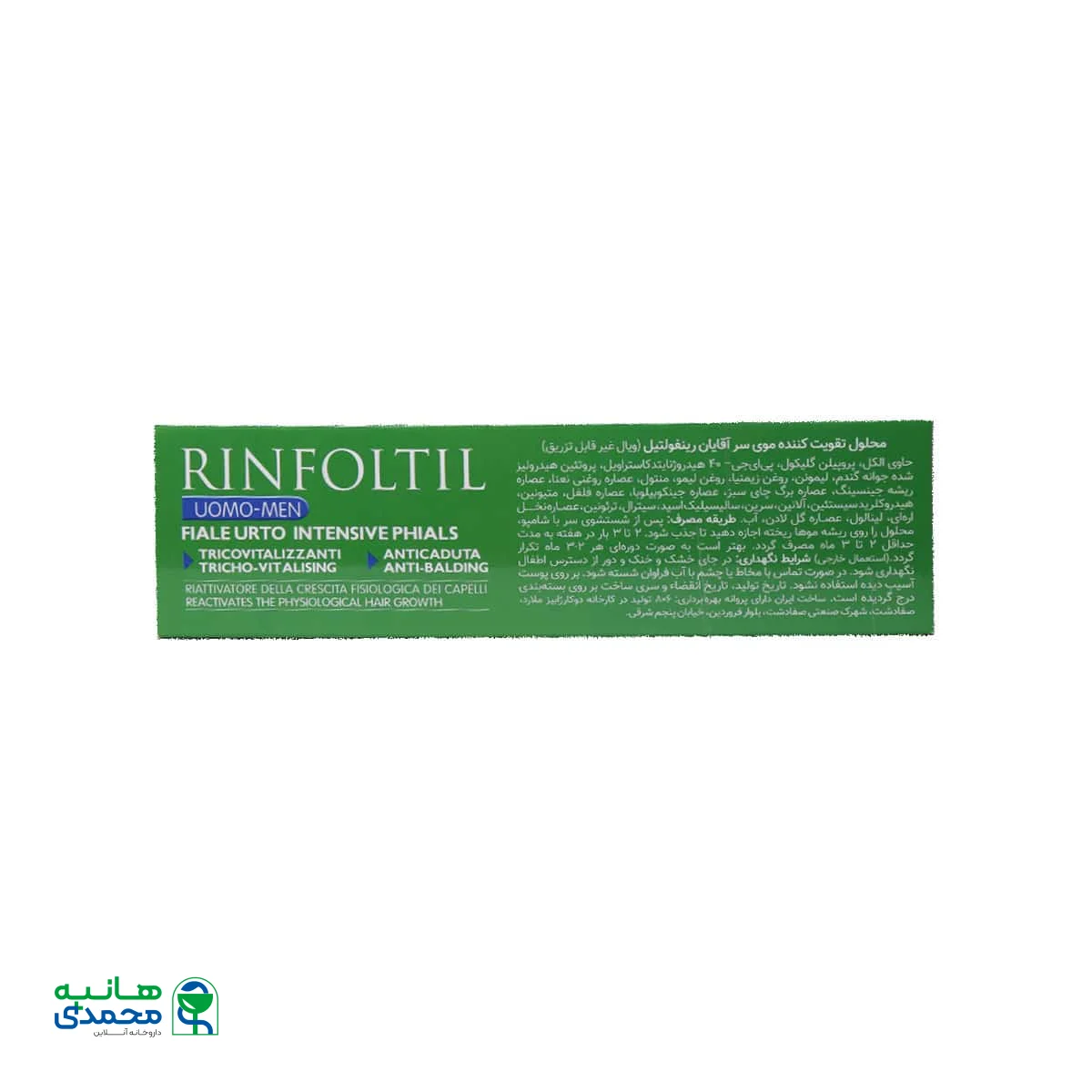 ویال مردانه رینفولتیل فارمالایف با ترکیبات موثر فعال کننده مجدد رویش مو و همچنین به افزایش  ضخامت موها، تقویت موی سر و جلوگیری از ریزش کمک می‌کند.