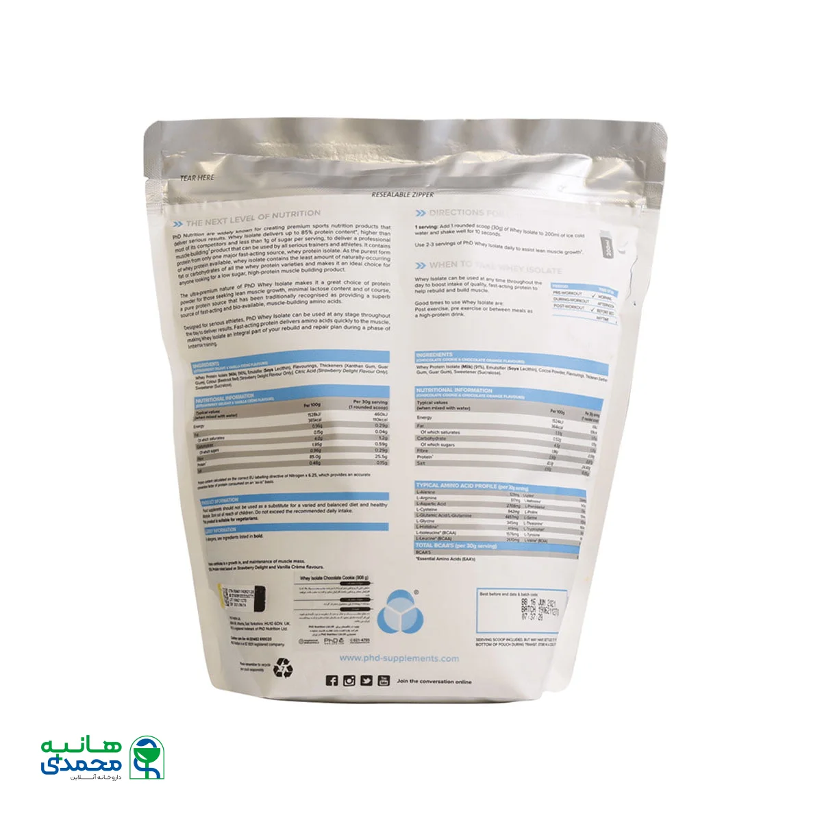 پودر پروتئین وی ایزوله پی اچ دی 908 گرمPHD Whey Isolate Chocolate Cookie 908 g