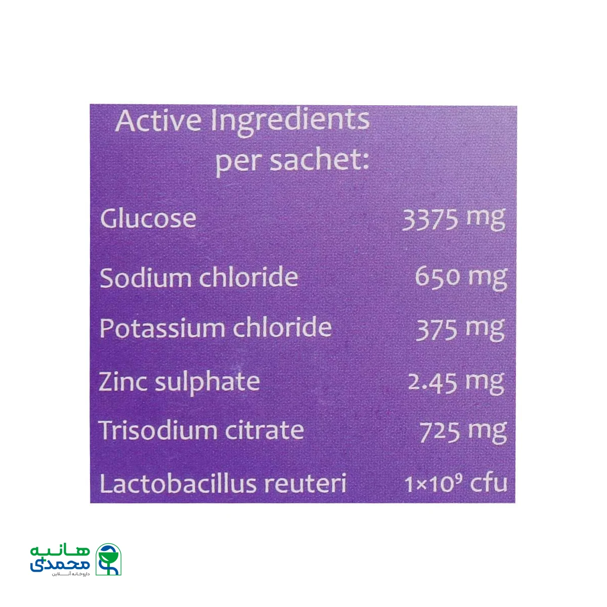 یک ساشه را در یک لیوان آب بزرگ (ترجیحا جوشیده و خنک شده) حل کنید و مصرف نمائید.