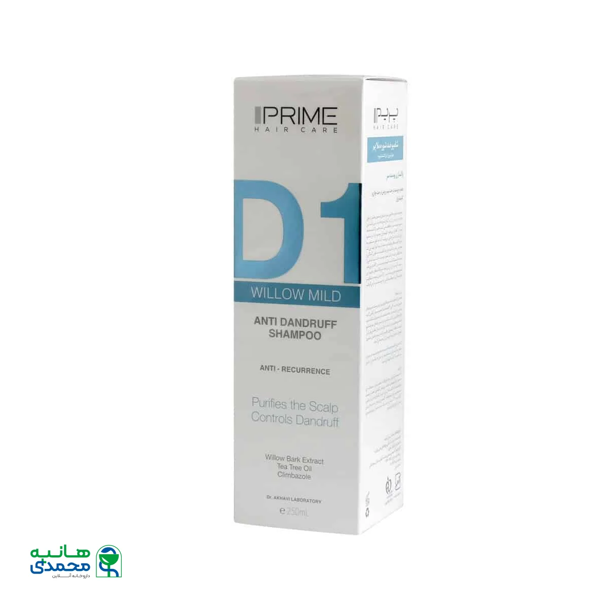 شامپوی ضد شوره ملایم D1 پرایم حاوی ترکیبات بسیار موثر از جمله عصاره پوست درخت بید، روغن درخت چای و کلیمبازول است.