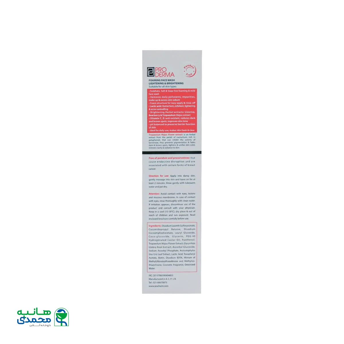 ویژگی های فوم شستشو و روشن کننده پوست صورت پرودرما