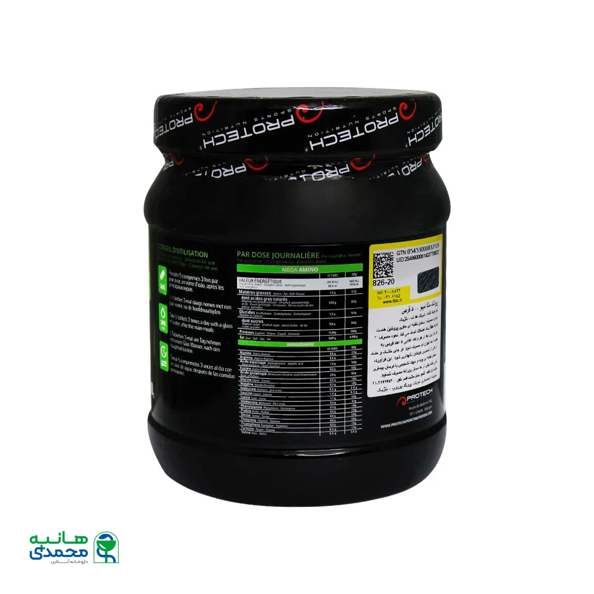 جدول ترکیبات قرص مگا آمینو پروتک