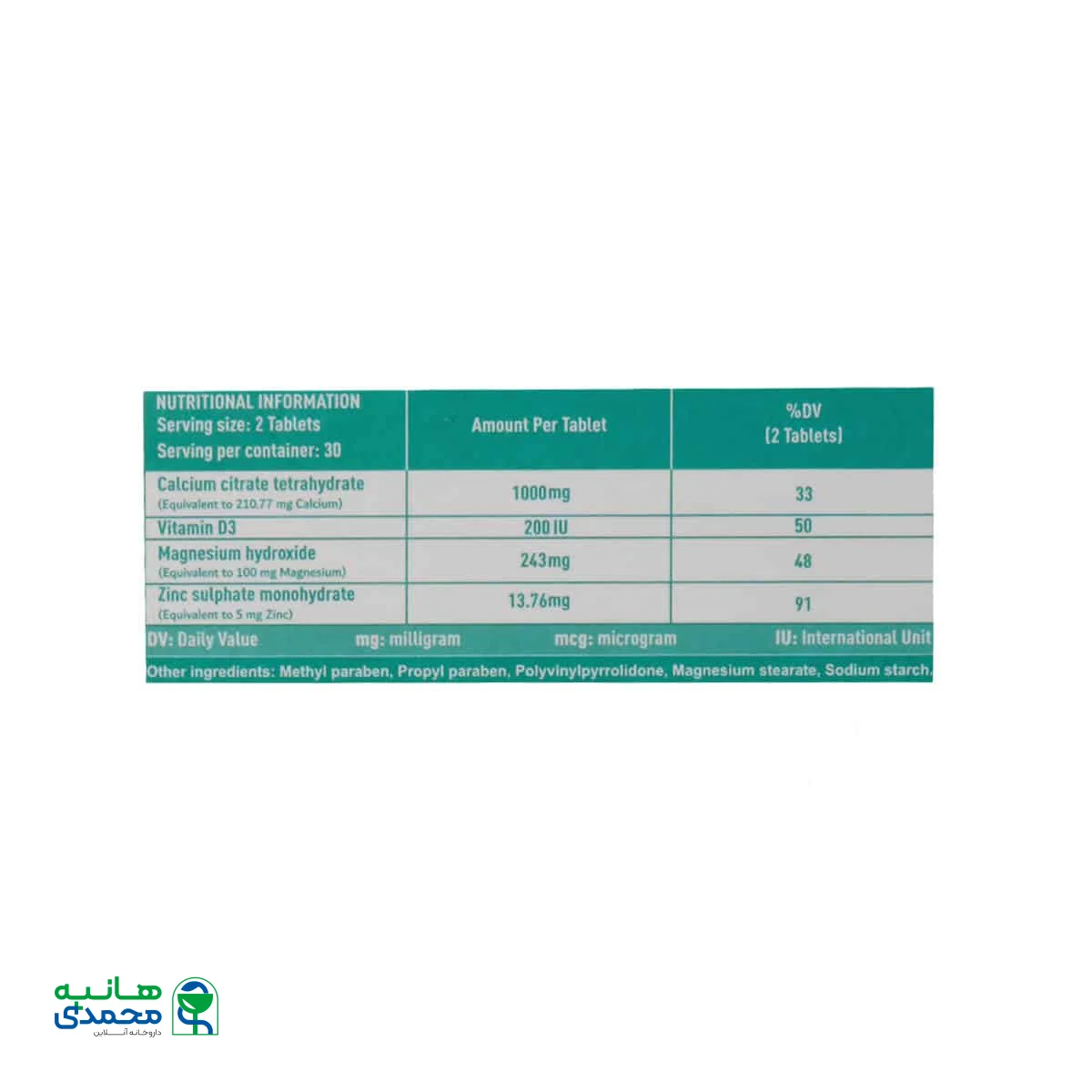 • دارای ویتامین D3، منیزیم هیدروکساید و زینک سولفات