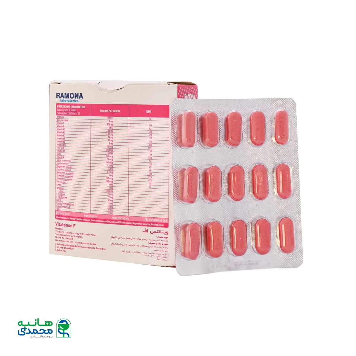 روزانه یک قرص VITATENSE F رامونا همراه با وعده غذایی اصلی و یک لیوان آب مصرف شود.