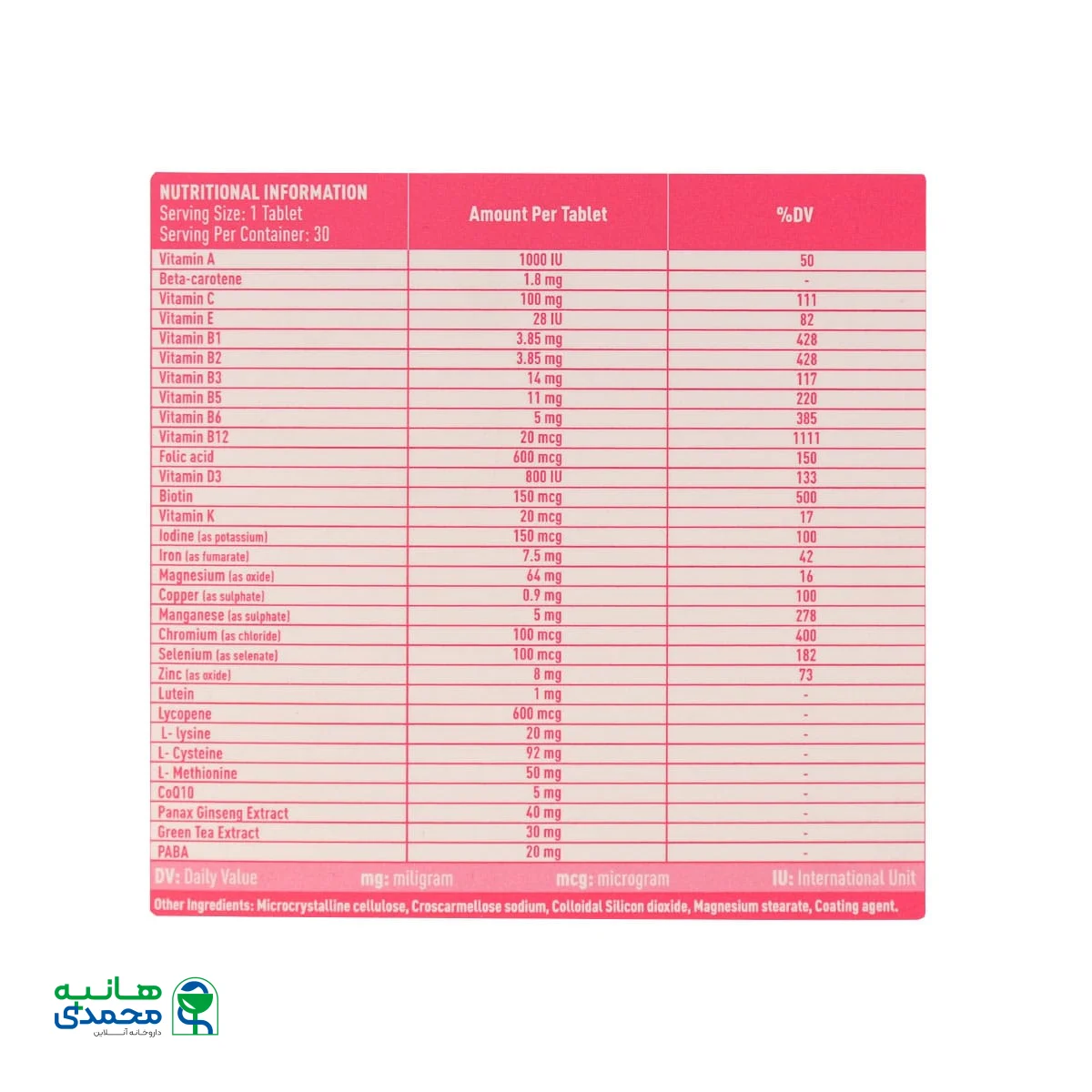 ویژگی های قرص مولتی ویتامین و مینرال ویتاتنس اف رامونا