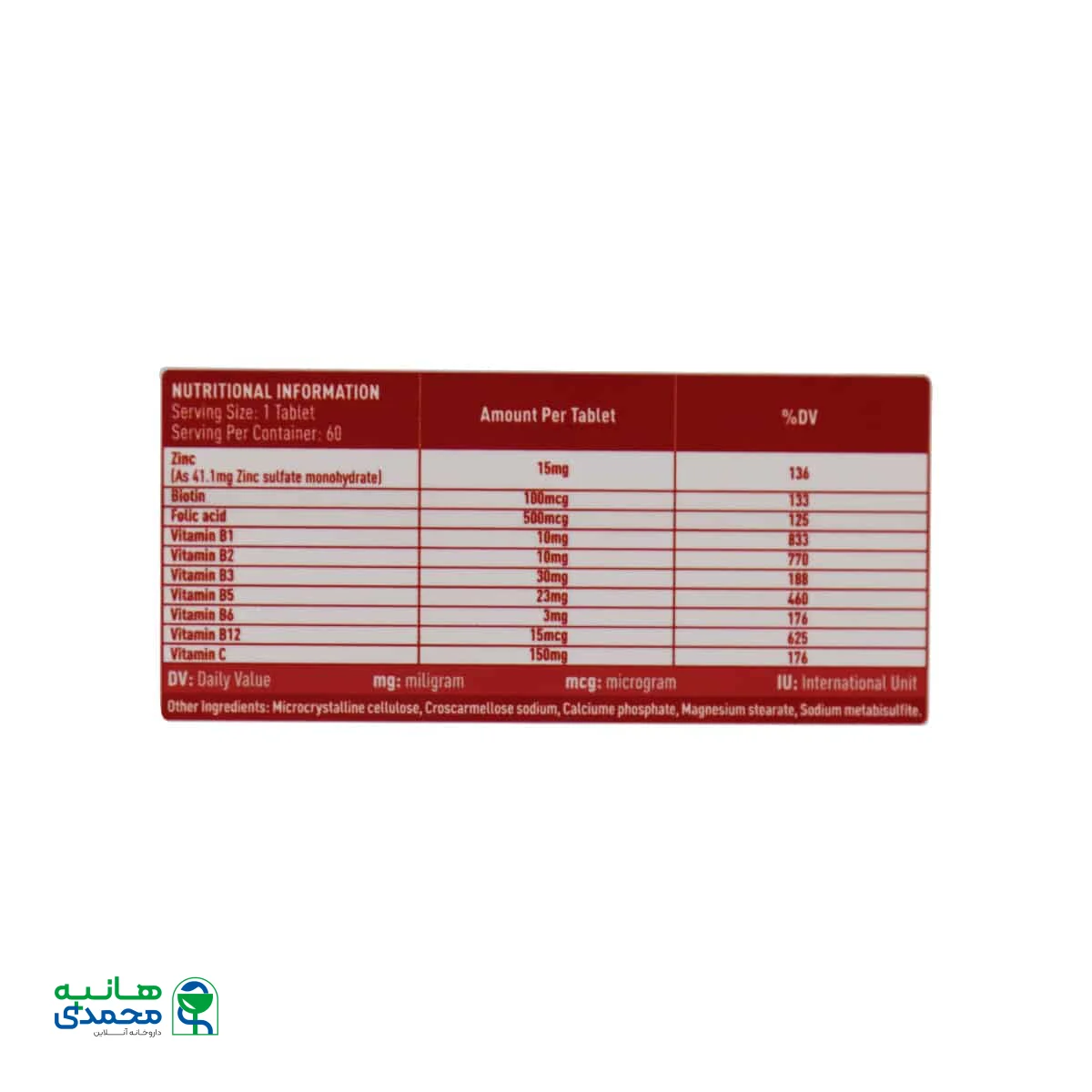 • حاوی زینک، بیوتین، ویتامین C و ویتامین‌های گروه B