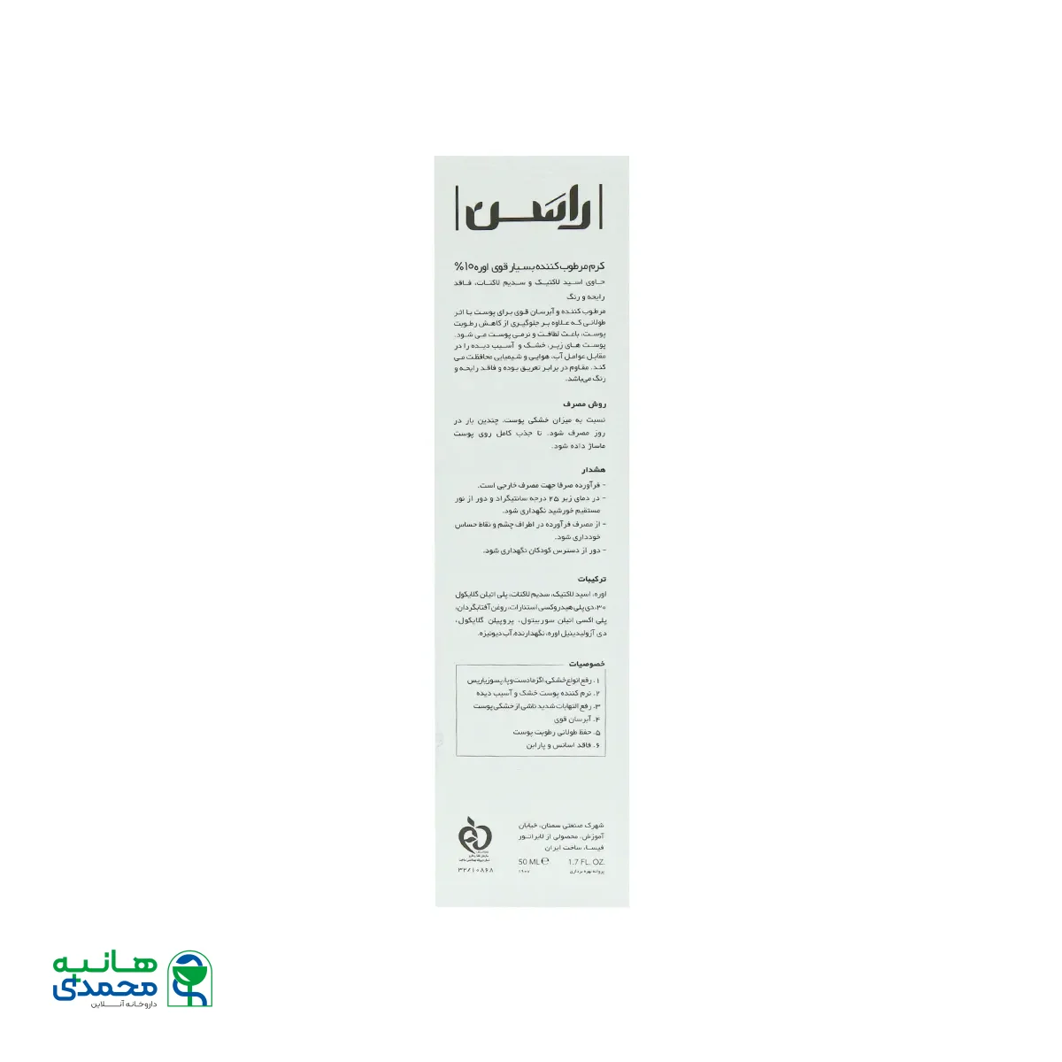 ترکیبات کرم مرطوب کننده بسیار قوی اوره 10% راسن