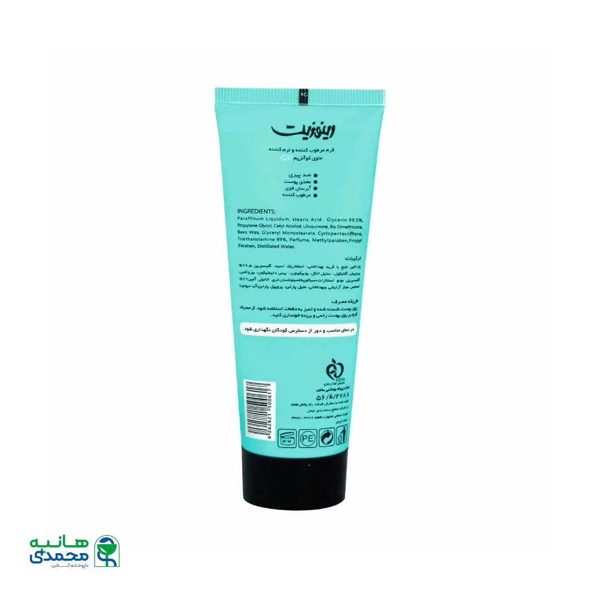 کرم تیوپی مرطوب کننده و نرم کننده کوآنزیم Q10 رینوزیت برای جلوگیری از خشکی و پیری پوست محصولی ایده آل است. این کرم با حجم 75 میلی لیتری و اندازه کوچک خود مناسب قرار گرفتن در کیف و استفاده در هر شرایط زمانی و مکانی است. اندام‌های بدن انسان در مقابل عوامل محیطی تغییر و رو به پیری می‌روند؛ این فرایند طبیعی است اما ما می‌توانیم با استفاده از محصولات آرایشی و بهداشتی آن را به تعویق بیندازیم. به طور مثال پوست انسان در طول زمان لطافت و خاصیت کشسانی خود را از دست می‌دهد اما می‌توان با استفاده از کرم‌ مرطوب کننده و آبرسان آن را تا حدی جوان کرد و چین و چروک‌ها را از بین برد. کوآنزیم کیوتن این محصول با از بین بردن رادیکال‌های آزاد که نقش موثری در پیری زود هنگام دارند، لطافت و نرمی را به پوست شما هدیه می‌دهد.