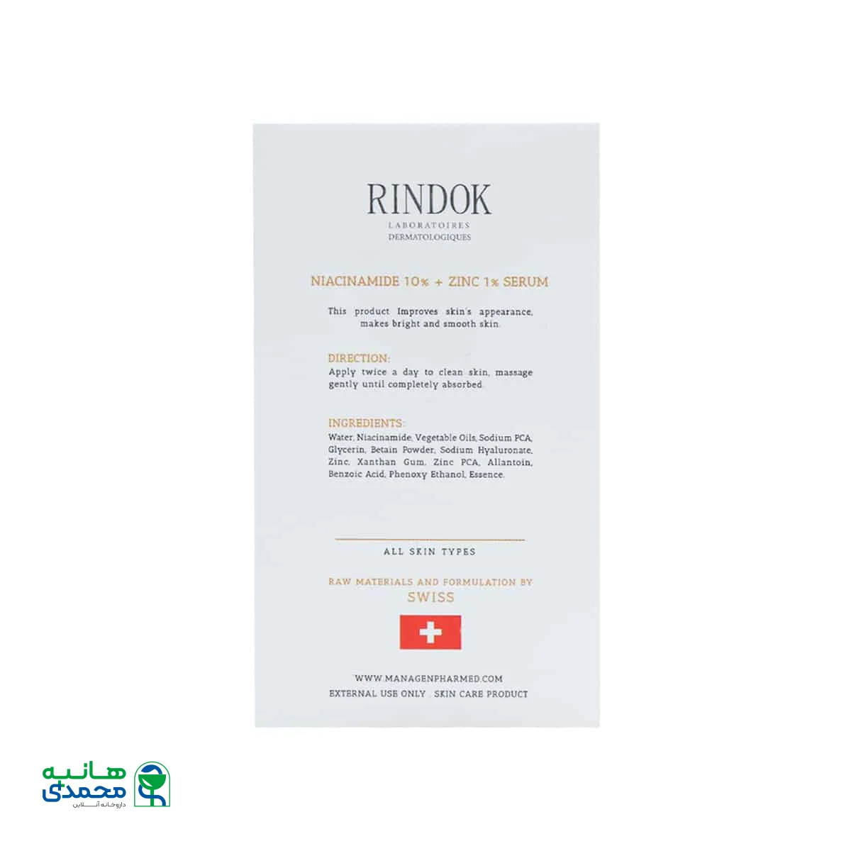 مشخصات کلیRindok Niacinamid 10 And Zinc 1 Serum 30 ml