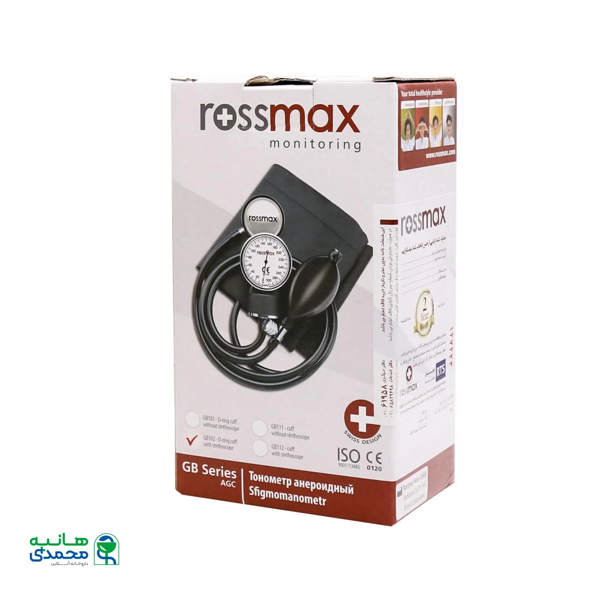 فشارسنج عقربه ای رزمکس مدل GB102 برای اندازهگیری فشار توسط شنیدن صدای نبض است. دقت فشارسنج های عقربه ای نسبت به فشار سنج های دیجیتال بالاتر است و دلیل علاقه مندی استفاده اکثر پزشکان، پرستاران و حتی بعضی مردم همین امر است. فشارسنجهای عقربهای نسبت به فشارسنجهای دیجیتالی، گزینهها و خدمات کمتری ارائه میکنند اما قیمتشان مناسبتر است و عمر نسبتا طولانیای هم دارند. فشارسنج رزمکس از چهار قسمت کاف دور بازو، پوآر (پمپ)، صفحه عقربهای و استتوسکوپ (گوشی پزشکی) تشکیل شده است. کاف دور بازو از پارچهای بدون لاتکس است که ایجاد حساسیت نمیکند. شیر تخلیهی پوآر از فلز برنج ساخته شده و روی آن توسط کروم پوشش داده شده است. فشارسنج تا دامنهی 300 میلیمتر جیوه درجهبندیشده است.