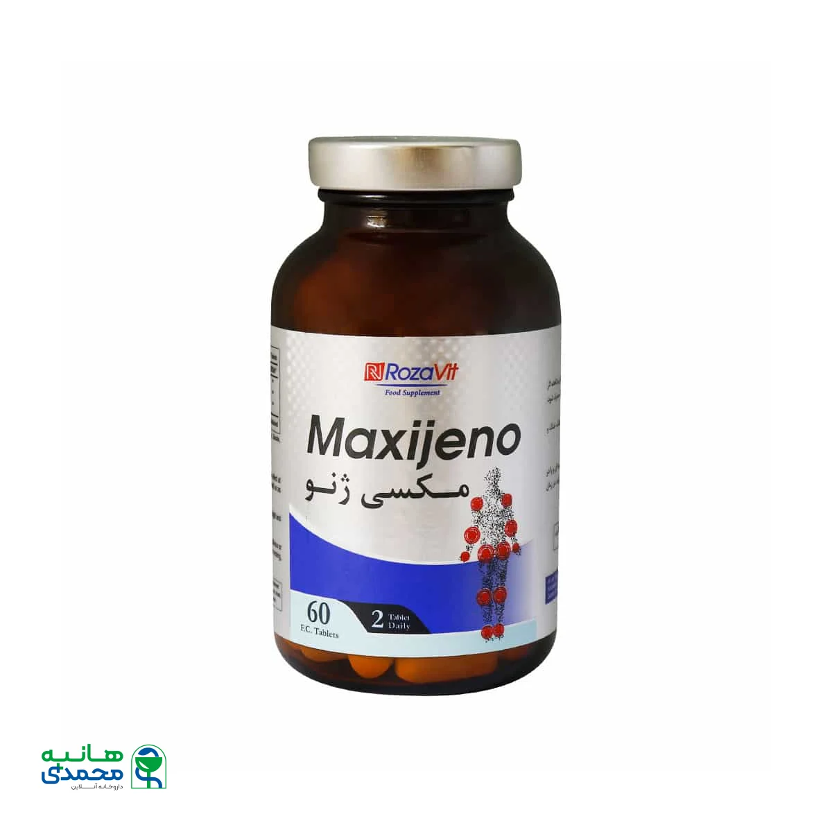 قرص مکسی ژنو رزاویت در حفظ سلامت مفاصل و غضروفها نقش موثری دارد. این مکمل حاوی انواع مواد معدنی ضروری جهت استحکام و سلامت ساختار اسکلی بدن بوده که تقویت استخوانها و دندانها را به دنبال دارد. مکسی ژنو از پوکی استخوان نیز جلوگیری نموده و در انتقال و فعالیت عصبی و آرامش عضلات نقش موثری دارد. از آنجایی که قرص maxijeno موجب تشکیل ماتریکس لازم جهت شکل گیری استخوانها میشود، خرید گلوکزامین و مصرف آن در سنین رشد مطابق با دستور پزشک نیز مناسب است.