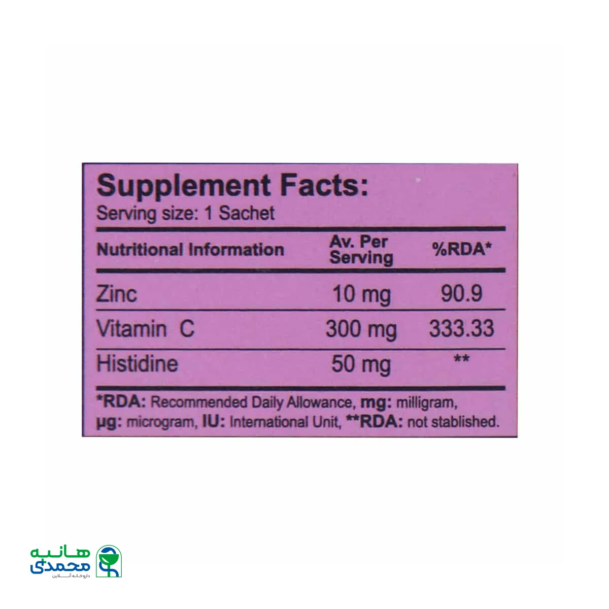 g = گرم / mg = میلی گرم / µg یا mcg = میکروگرم / IU = واحد بین المللی
