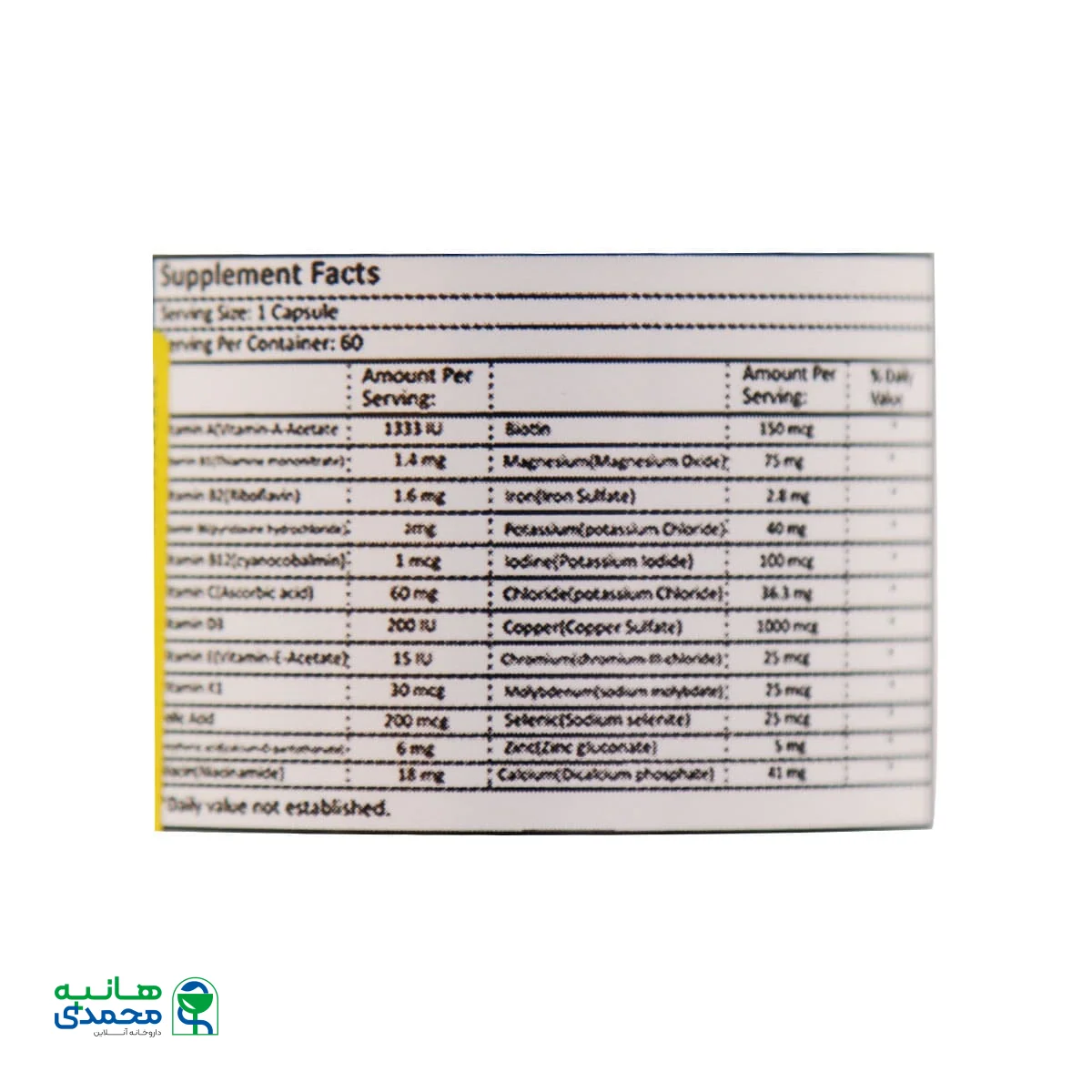 g = گرم  /  mg = میلی گرم  /  µg یا mcg = میکروگرم  /  IU = واحد بین المللی