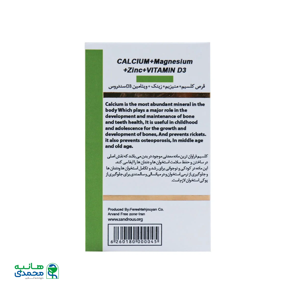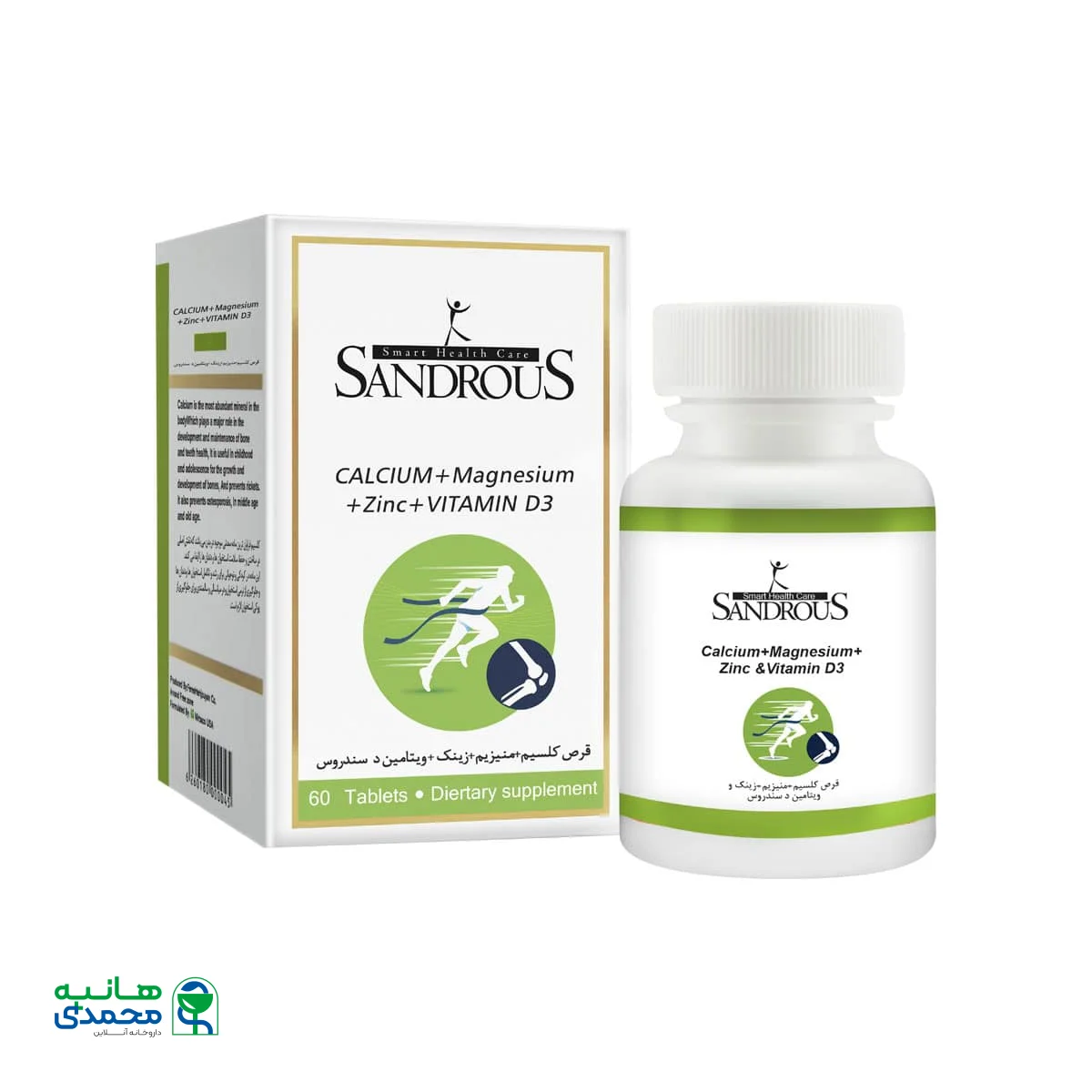 قرص کلسیم منیزیم زینک ویتامین D سندروس 60 عددSandrous Calcium Magnesium Zinc Vitamin D3 60 Tablets