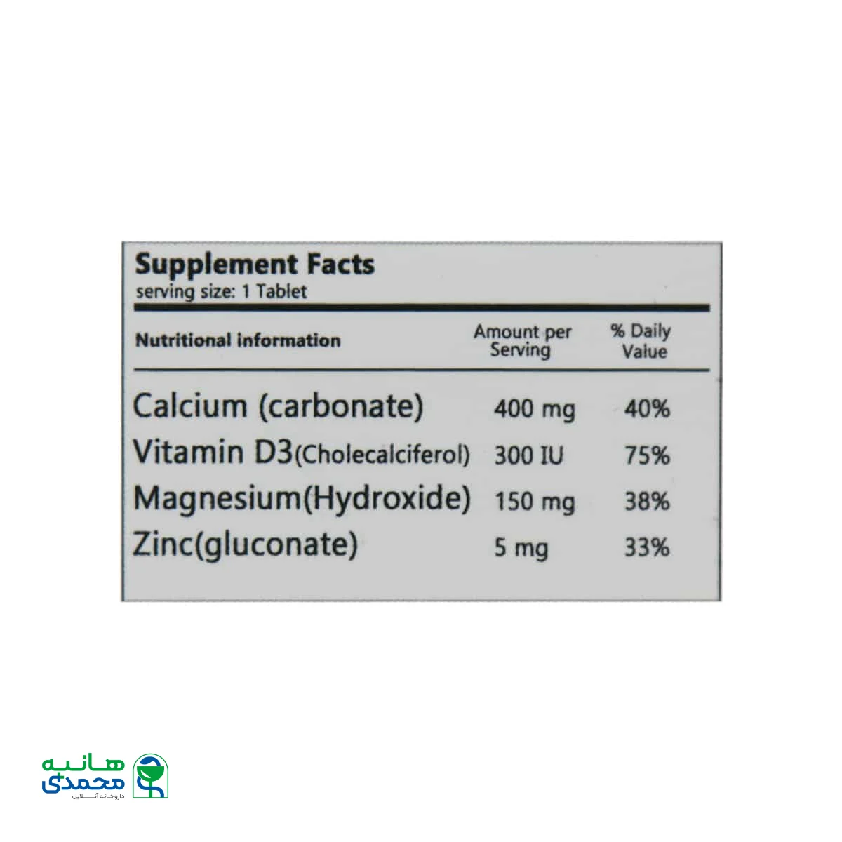 در ترکیبات این محصول کلسیم، منیزیم، زینک و ویتامین د دیده می‌شود که هر یک نقش مهمی در سلامت عمومی بدن بر عهده دارند. این قرص کلسیم در تقویت استخوان‌ها، کاهش کرامپ عضلانی و کاهش خطر استئوپروز موثر است. در ادامه به کارایی هر یک از ترکیبات این محصول می‌پردازیم: